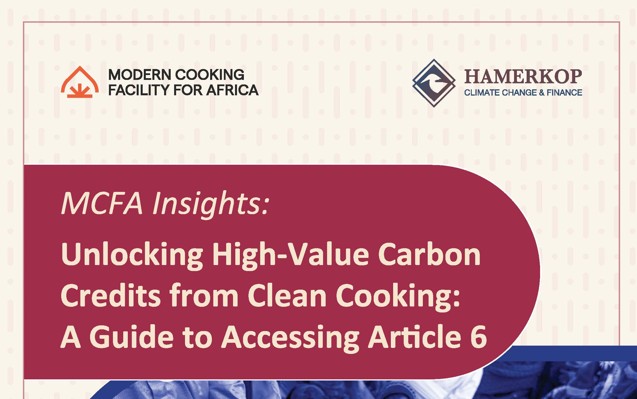 The Modern Cooking Facility for Africa (MCFA) is presenting its first knowledge product under the MCFA Insights series: Unlocking High-Value Carbon Credits from Clean Cooking: A Guide to Accessing Article 6. This study aims to support MCFA portfolio companies and other stakeholders in the clean cooking sector to navigate the evolving carbon market landscape and maximise benefits for clean cooking initiatives across Sub-Saharan Africa.